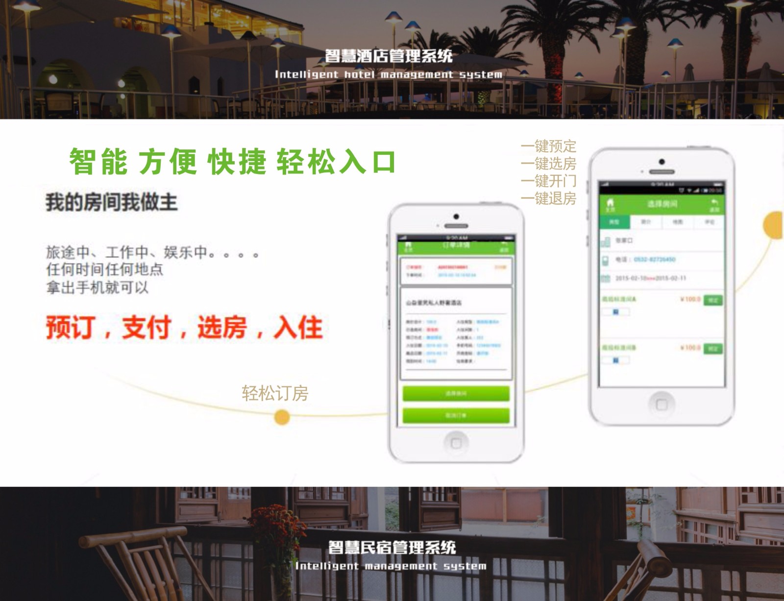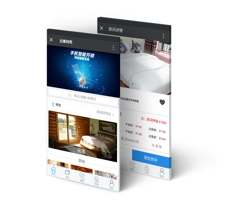 手機(jī)可預(yù)訂房間無需去酒店,招待客人特別方便,遠(yuǎn)程用手機(jī)為客人完成預(yù)訂,手機(jī)遠(yuǎn)程開鎖客人可直接入住,無論你在那兒都可以實現(xiàn),手機(jī)訂房支付、退房、續(xù)住。
